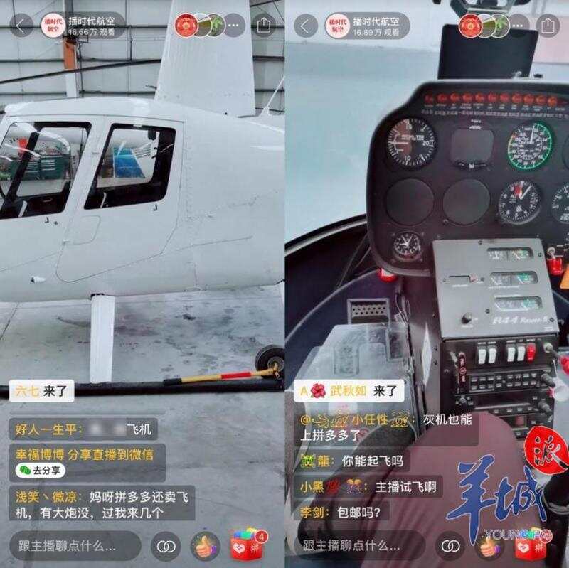 据悉,此次“飞播”活动主办方还在拼多多直播间里设置了4款货真价实的直升机待售,可应用于飞行培训、飞行体验、短途旅行、观光旅游等民用领域。