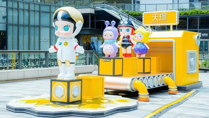 在户外北广场FUN块乐园,高达3.5米的潮玩顶流Molly艺术大亨“小茉莉”抢占了C位,她身旁的Labubu森林音乐会,还有系列隐藏款“歌唱家”。在FUN块创造营,无论是英姿飒爽的宇航员Molly,还是灵气十足的Pucky宝宝,都成为了玩家们的打卡热点。B2层露天广场也已变成动力中转站,跟着开心火车派对里的Molly们踏上互动FUN块灯,为潮玩之旅赋能。