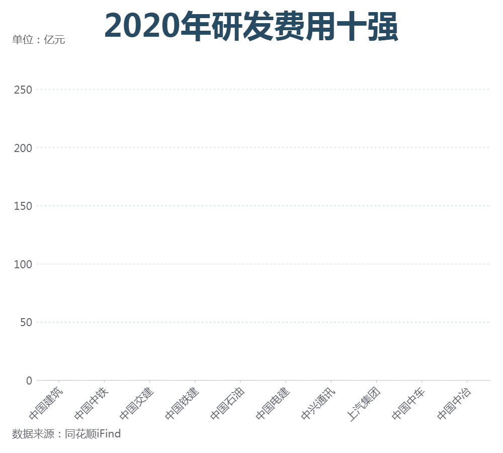2020年,最舍得砸钱研发的公司是哪些?数据显示,2020年,有13家公司研发投入超过100亿元,其中“中字头”企业成为研发大户,排名三甲的中国建筑、中国中铁和中国交建砸钱更是超过200亿元,当年研发费用分别为255.23亿元、218.38亿元和200.94亿元。