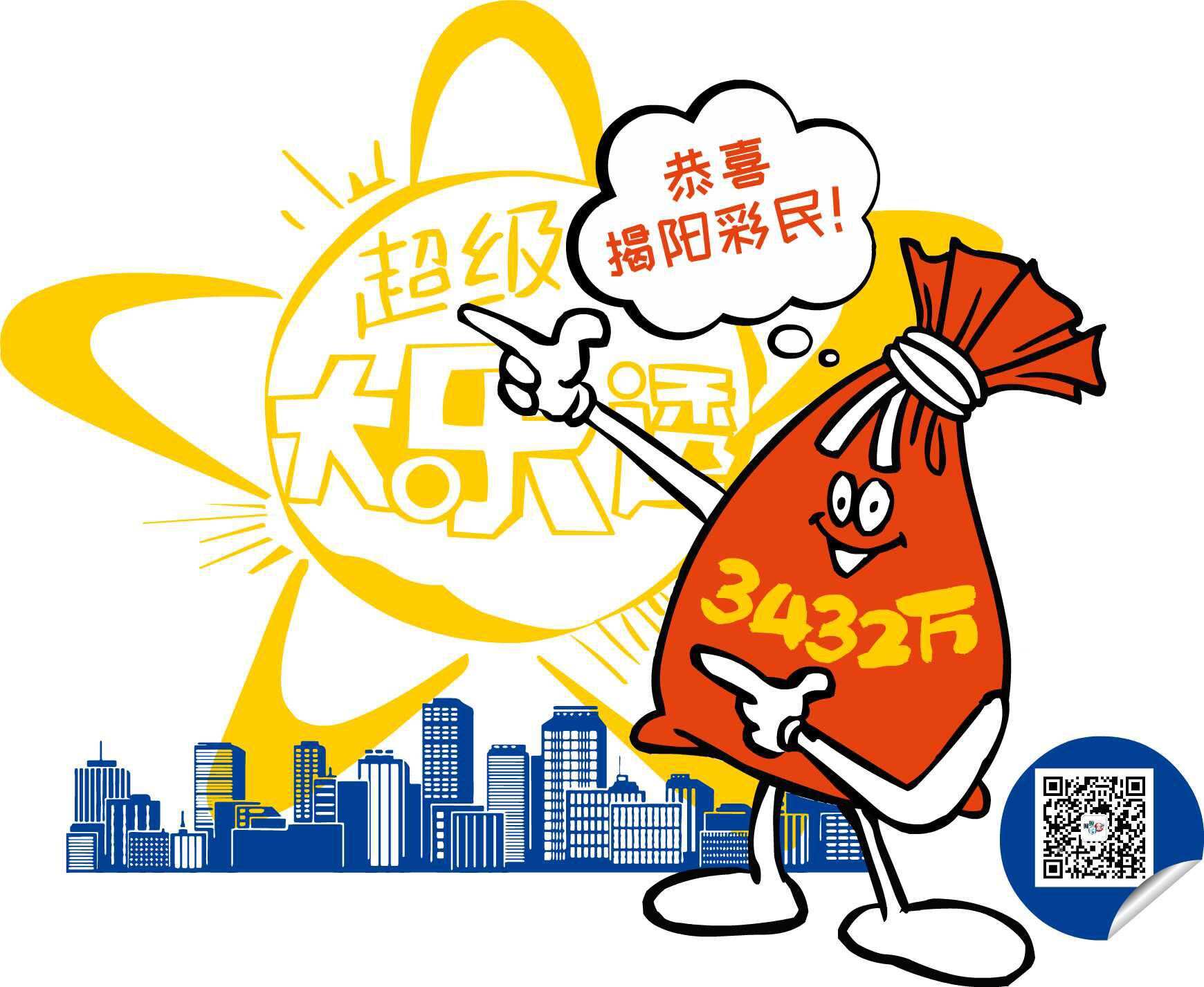 太给力!广东彩市又迎来巨奖。5月15日,体彩大乐透迎来“10亿元大派奖”的第16期开奖——第21054期前区开出号码“03、06、17、20、25”,后区开出号码 “03、09”。当期全国销量为3.72亿元,为国家筹集彩票公益金1.34亿元。其中,一注追加投注一等奖花落广东揭阳,单票总揽奖金约3432万元。