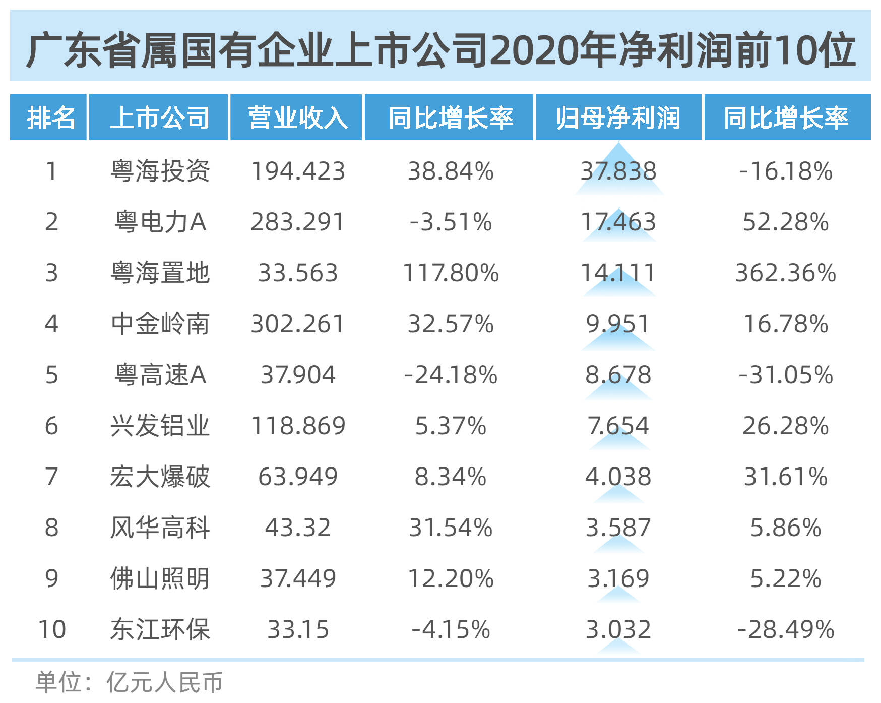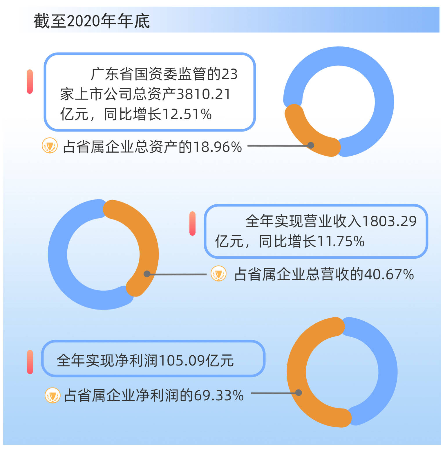 数据显示,2020年广东省国资委监管的23家上市公司全年实现营业收入1803.29亿元,同比增长11.75%,占省属企业总营收的40.67%;实现净利润105.09亿元,占省属企业净利润的69.33%。