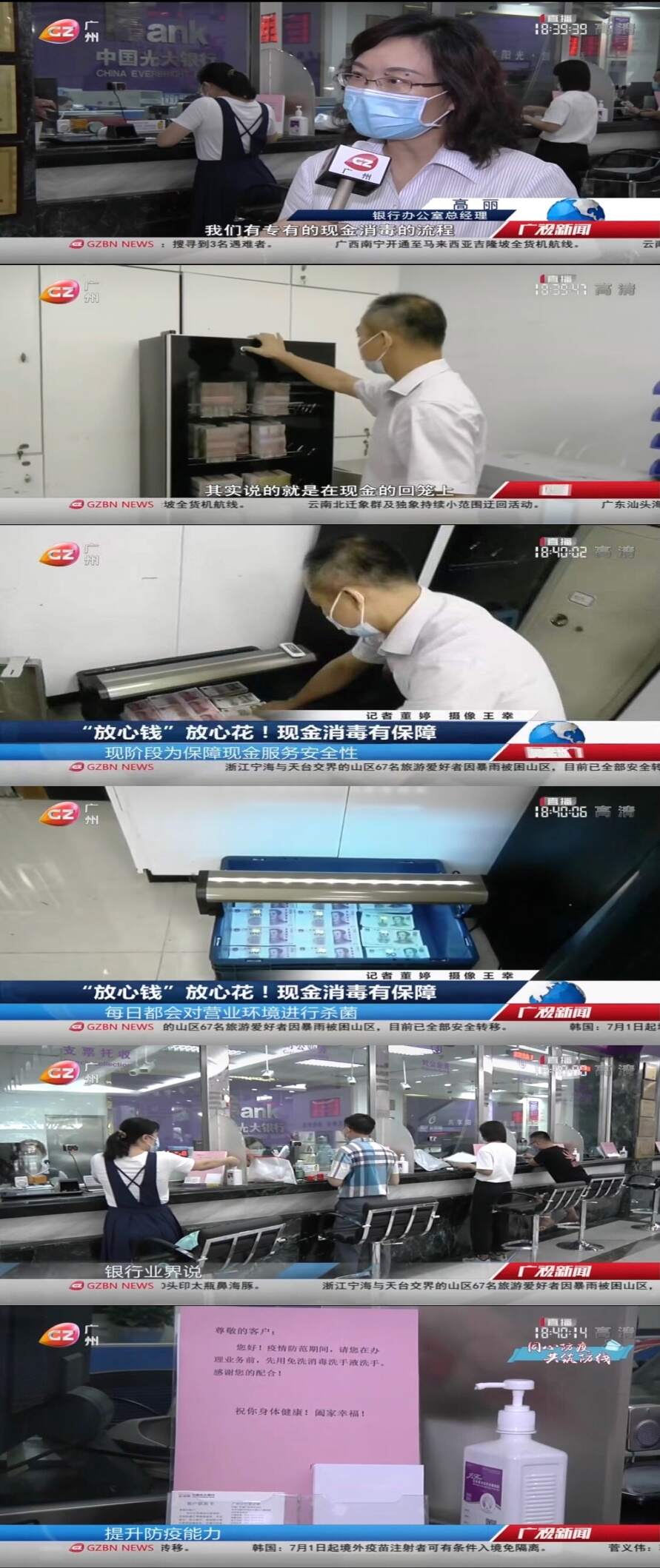 加强现金消毒工作,严格执行收支两条线
