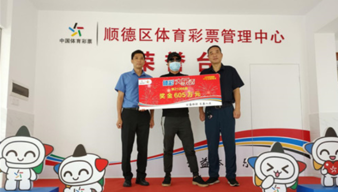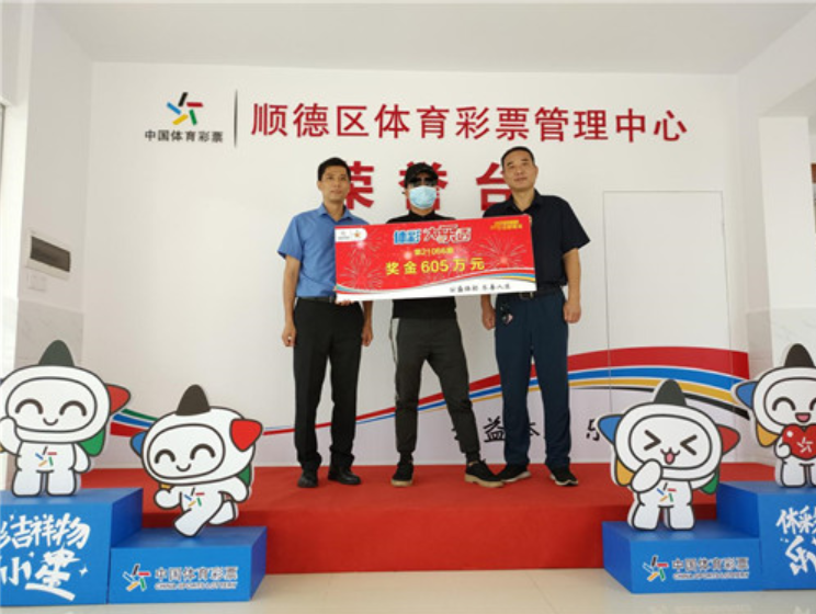 现场由顺德区体彩中心相关负责人为大奖得主颁发了605万元奖牌。康先生不惧露脸,主动出镜领取了大奖。