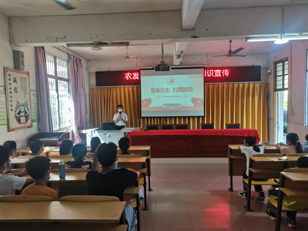 为切实做好扫黑除恶宣传工作,营造扫黑除恶的浓厚氛围,增强广大人民群众对黑恶势力的防范意识,推进平安校园建设,近日,农发行怀集县支行组织多部门联合宣传活动,到怀集县坳仔中学开展扫黑除恶活动宣传。
