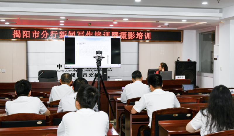 通过此次培训,使员工对新闻写作有全面、准确的理解,掌握了新闻的基本写作及拍摄的方法和技巧,为进一步做好农发行揭阳市分行宣传报道工作奠定了良好的基础。(杨广、林佳)