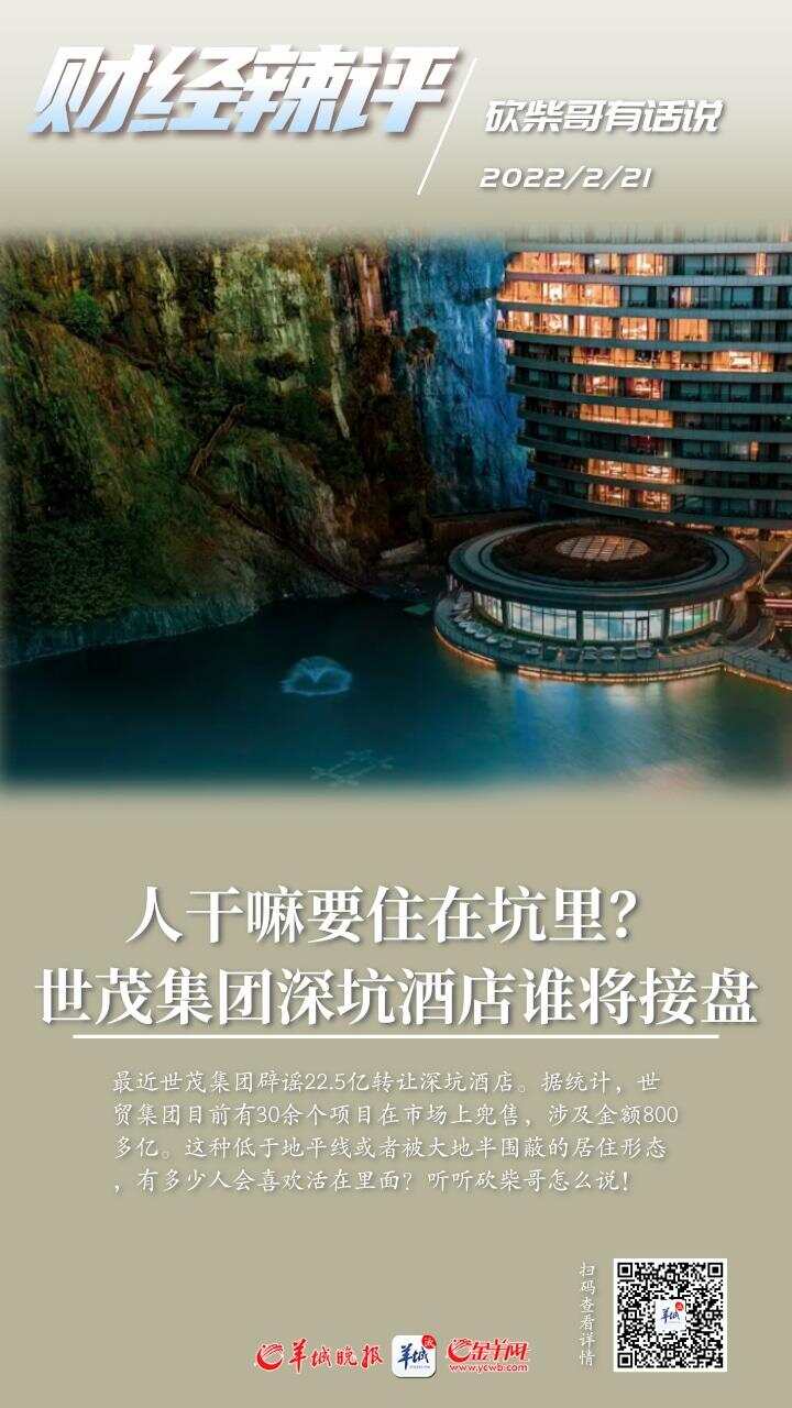 最近世茂集团辟谣22.5亿元转让深坑酒店。据统计,世贸集团目前有30余个项目在市场上兜售,涉及金额800多亿元。跳出这种资本运作的游戏,不禁疑惑:人为什么要住在一个深坑里面?