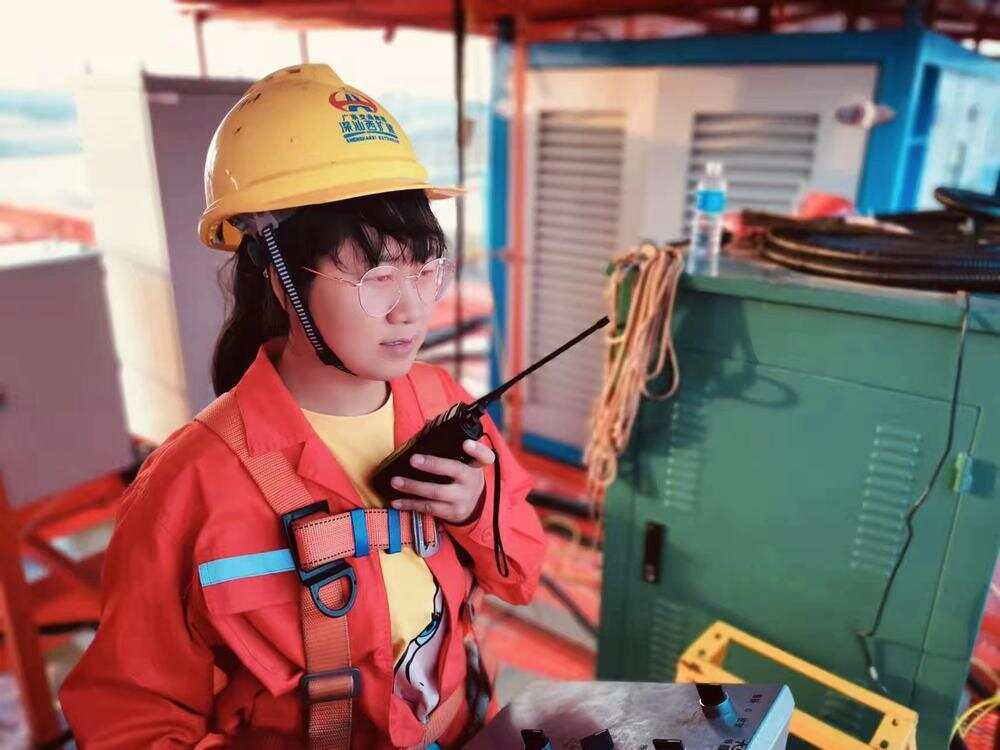 每当听到地面指挥人员通过对讲机传来指令,她就通过驾驶造桥机将长12米,重12吨的预制管桩精准地放入引孔内。