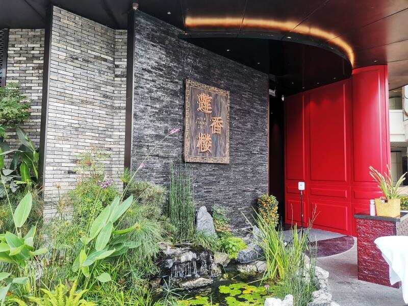 走入新开业的大同酒家,随处可见在装修布置上嵌入的传统文化元素——粤剧头套头饰等文化元素随处可见,房间名更是以“荔枝颂”“花间蝶”等粤剧粤曲相关元素来命名。