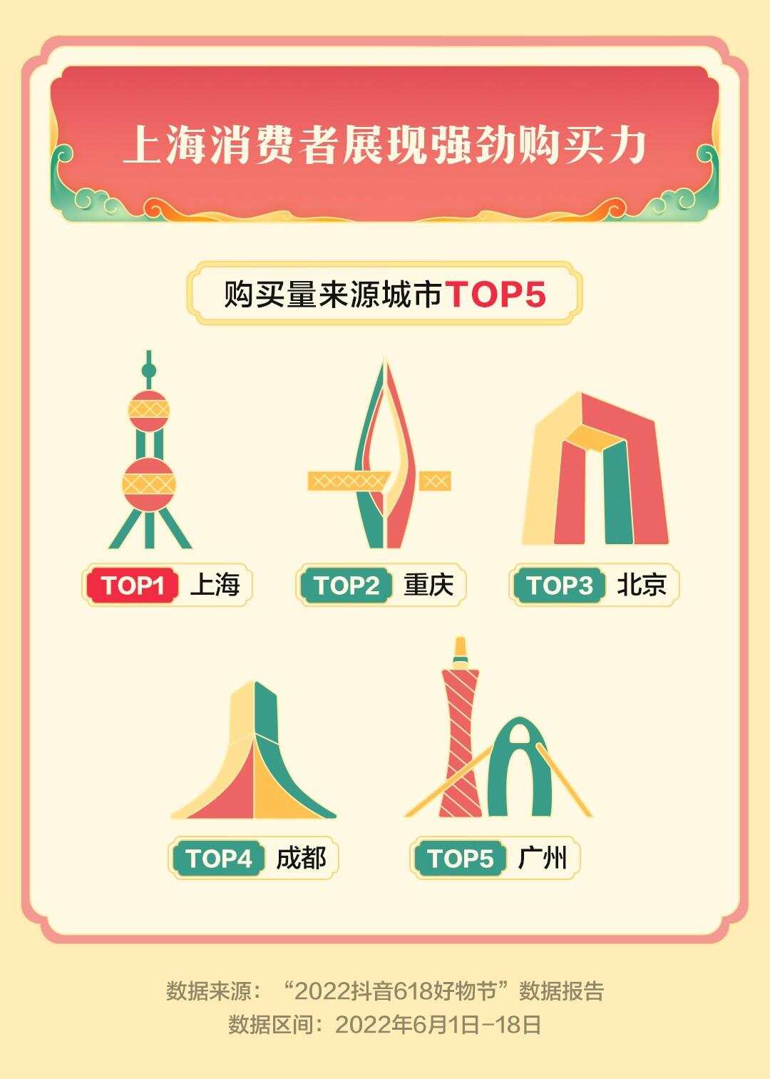 多地消费热度在618期间逐渐回升。报告显示,上海消费者展现出了强劲的购买力,购买量位列第一,来自重庆、北京、成都和广州的消费者购买量也居于全国前列。