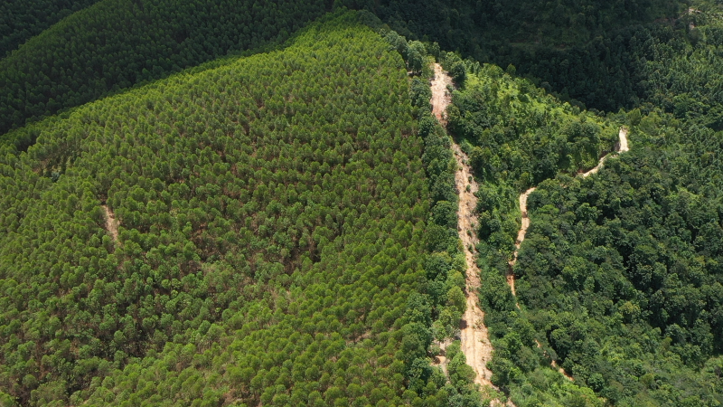 8月,位于梅州大埔县西南山区的洲瑞林场刚送走雨天,造林工人就扛着工具,沿着潮湿松软的土路爬坡,出发进行割灌除草、间伐、修枝、施肥、培土等一系列工序。日复一日的辛勤劳作,让倾斜的土坡都被硬生生踩出一条路来。