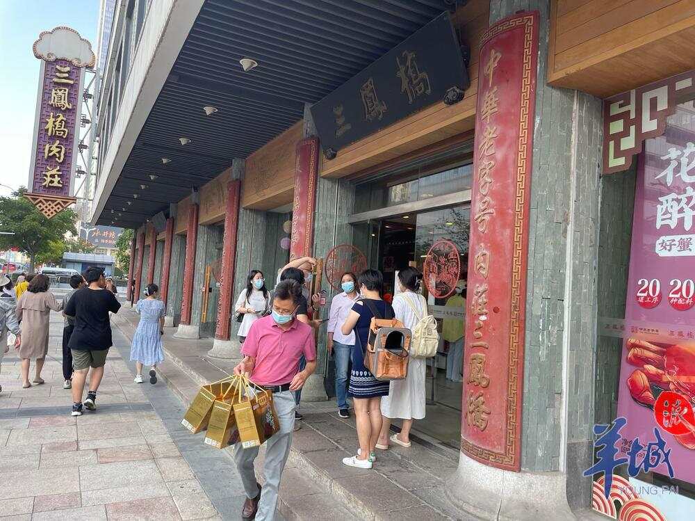 据介绍,三凤桥通过抖音、美团等平台推出了性价比较高的套餐,套餐中搭配有酱排骨这样的传统名菜,特色活动为老字号增添了年轻消费群,此外,三凤桥的熟食店也推出了真空装的卤味礼盒、应节的重阳糕等,游客们还可以通过线上旗舰店下单,把“无锡味道”带回家。