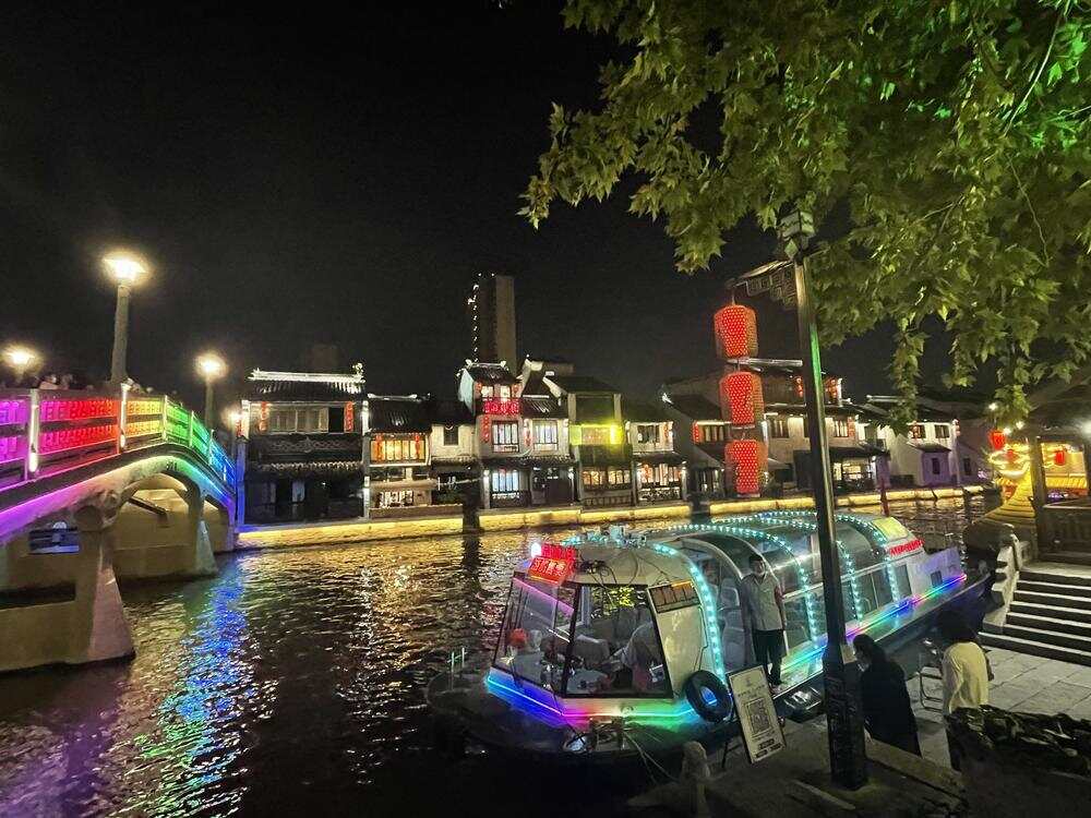 京杭古运河穿无锡市区而过,运河两边的街道便是南长街。作为著名的历史文化街区,这里也被称为“江南水弄堂,运河绝版地”。国庆期间,南长街客流不断,夜幕降临,运河上一排排红灯笼亮起。