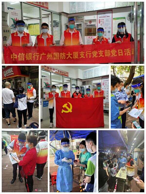 中信银行广州分行各级基层党组织闻令而动,党支部书记与党员组成先锋队,迅速对接街道社区,在符合防疫政策前提下协助各级政府与社区进行疫情防控工作。
