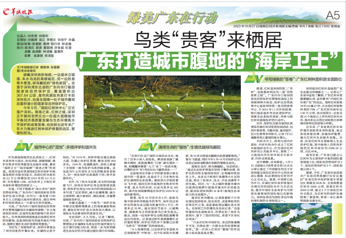 生态保护,久久为功。记者了解到,目前,广东内伶仃福田国家级自然保护区管理局正在编制《鸟类友好的城市规划与设计指引》地方标准,将进一步为深圳推进生态友好的开发建设提供指引和保障。