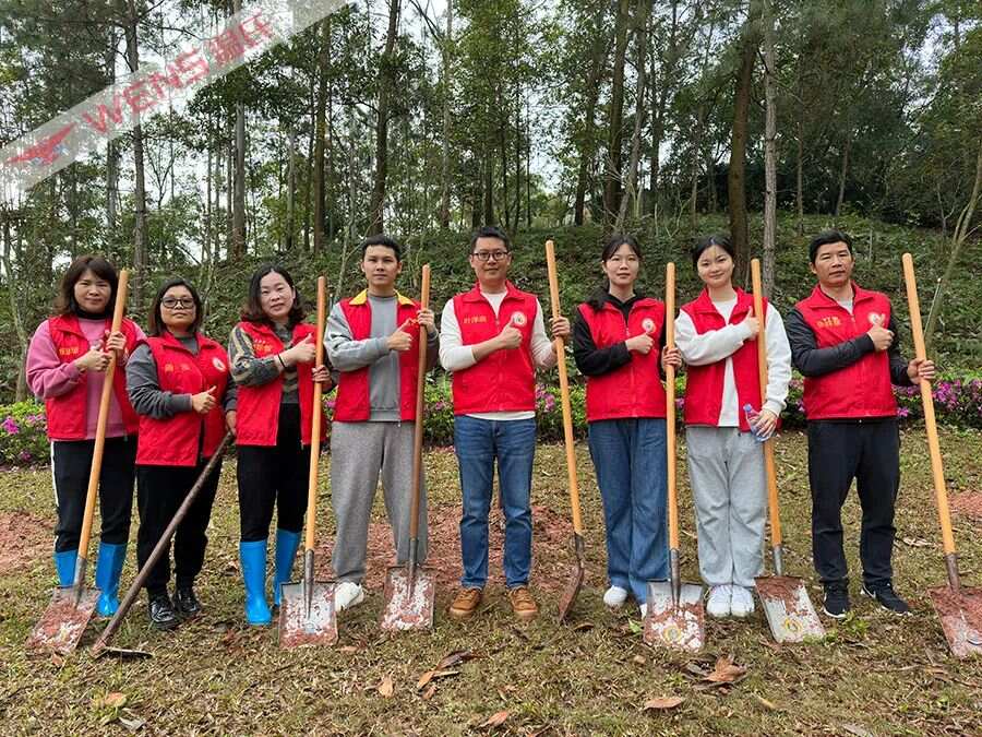上个月,温氏集团党委组织开展了“绿美新兴 温氏在行动——美满林”主题党日活动。党员干部和志愿者们手持铁锹、锄头,挖坑植苗、培土浇水,成功种植120株树苗。
