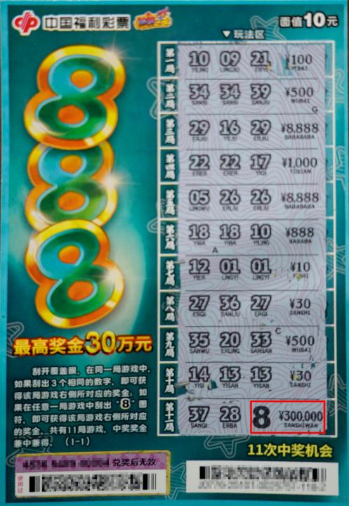 7月7日,佛山市44130451福彩销售站点传出喜讯,李先生(化名)凭借2张“888”刮刮乐即开票,将30万元奖金收入囊中。谈及中奖奖金的使用规划,李先生表示奖金计划用于房贷。