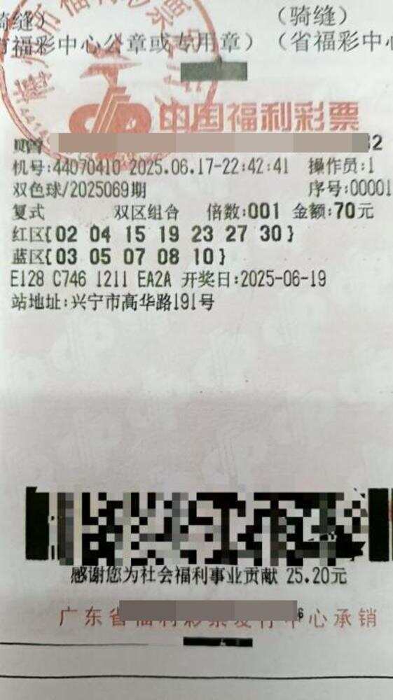 记者从梅州市福彩中心获悉,6月19日,中国福利彩票双色球第2025069期开奖,当期全国共开出一等奖3注,其中1注花落梅州兴宁高华路191号44070410福彩销售站点,中奖彩票为一张1倍“7+5”复式票,共中得一等奖1注、二等奖4注,中奖总奖金约1119万元。