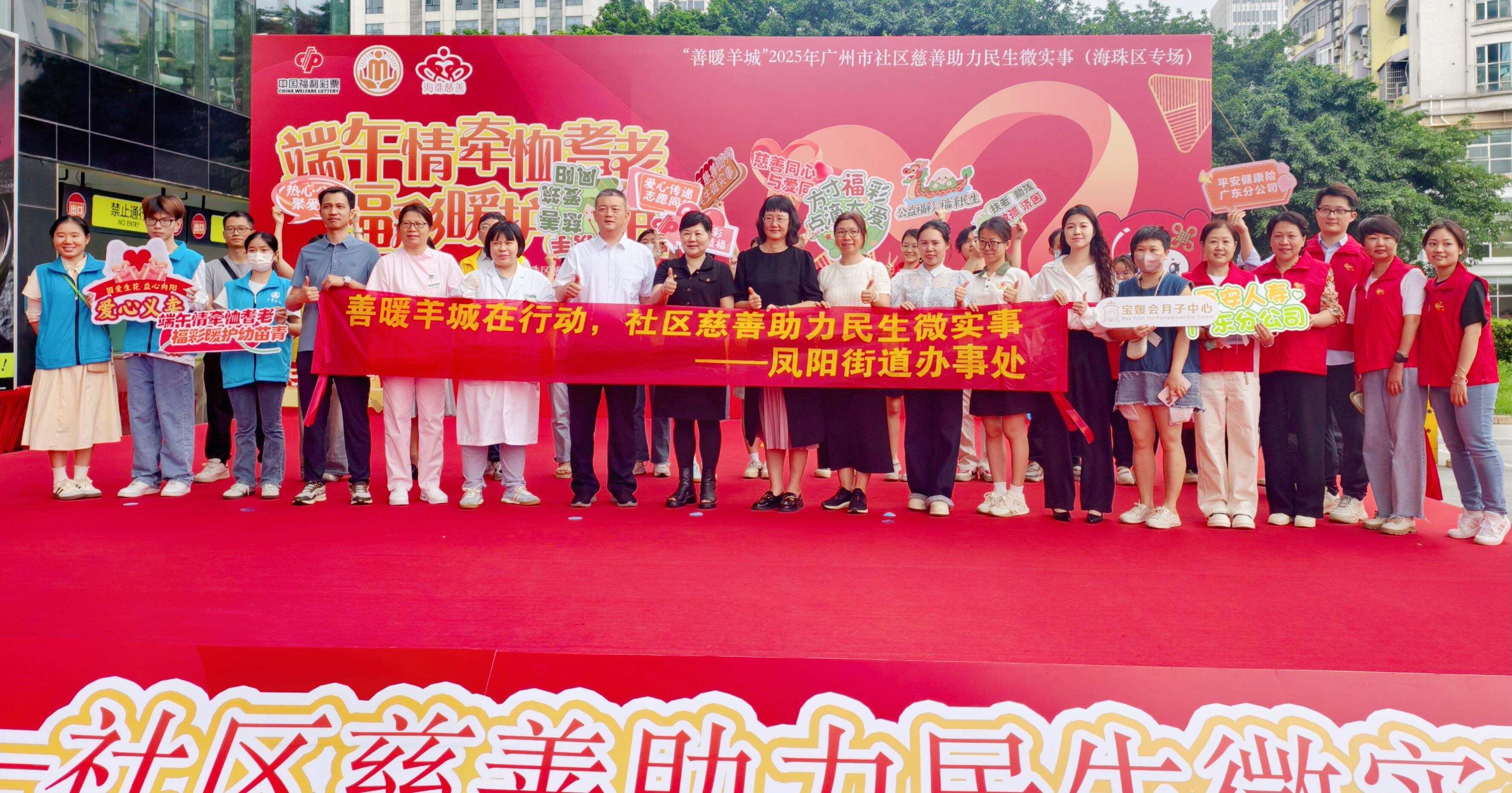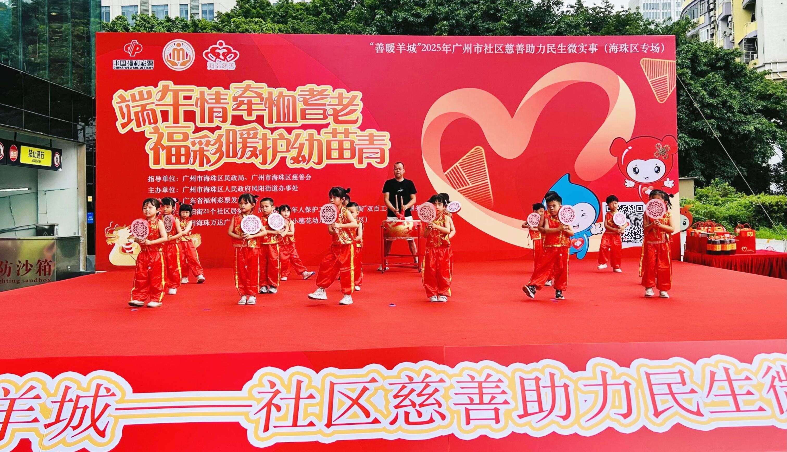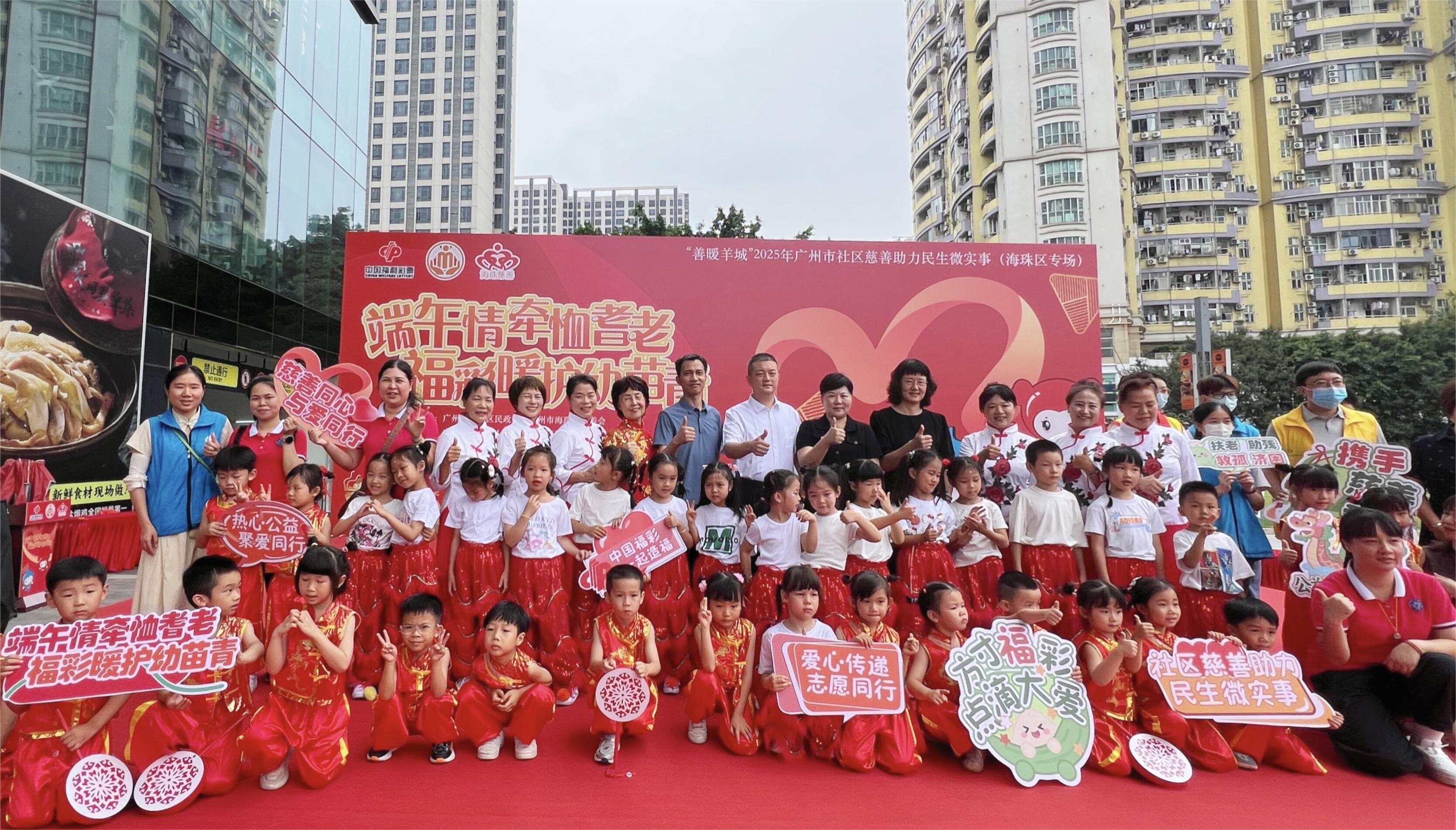 5月28日,由广东省福利彩票发行中心支持,海珠区民政局、海珠区慈善会指导,凤阳街道办事处主办的“善暖羊城”2025年社区慈善助力民生微实事——“端午情牵恤耆老,福彩暖护幼苗青”公益活动在海珠万达广场举行,以端午佳节为纽带,融合福彩公益力量与社区慈善资源,聚焦“一老一小”困难群体,助力民生微实事建设。