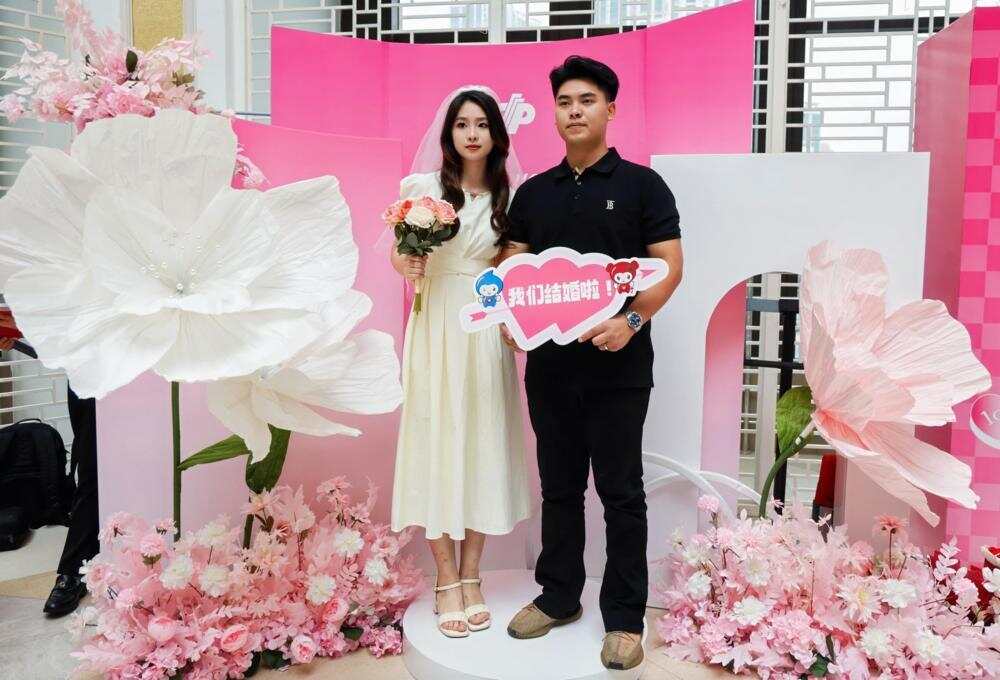 此外,活动现场打造的“福彩幸福花墙”成为人气打卡点,新人们在此拍照留念,记录幸福瞬间。