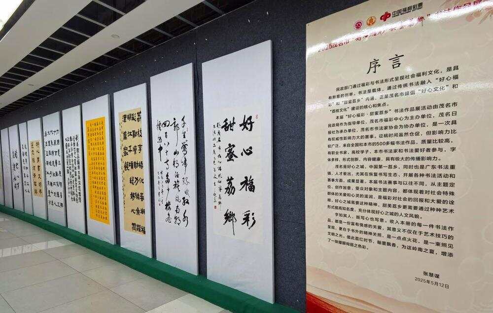 为弘扬中华优秀传统文化,传播福利彩票公益慈善理念,5月18日上午,由茂名市民政局指导、茂名市福利彩票发行中心主办、茂名日报社承办的2025年“好心福彩·甜蜜荔乡”书法作品展在茂名市图书馆开幕,现场翰墨流香、古韵盎然。